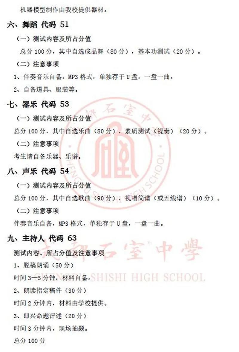根据上级主管部门工作要求,我校2020年艺体特长生各项目测试办法公布如下,欢迎各位艺体特长优秀人才报考石室!