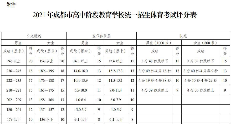 附件:2021年成都市高中阶段教育学校统一招生体育考试评分表