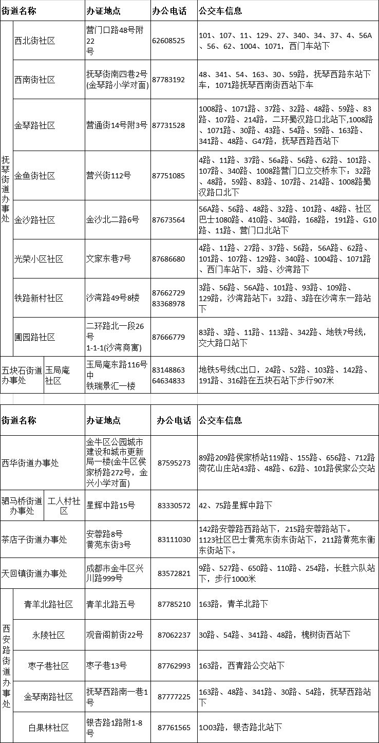 2020年金牛区各街道办事处流动人员随迁子女义务教育通知书办理地点地址及联系电话